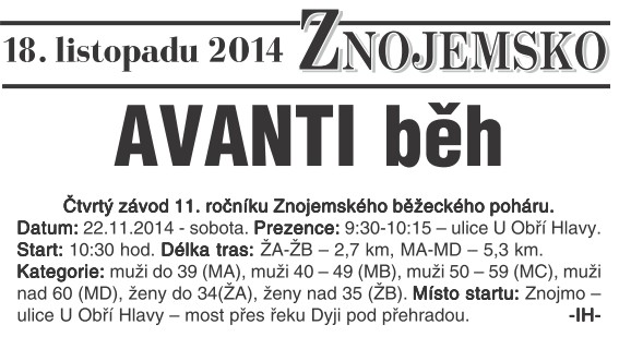 Přidány výsledky a odkazy na tisk a foto (O závodu) u čtvrtého běhu 12. ročníku ZBP "AVANTI běh".