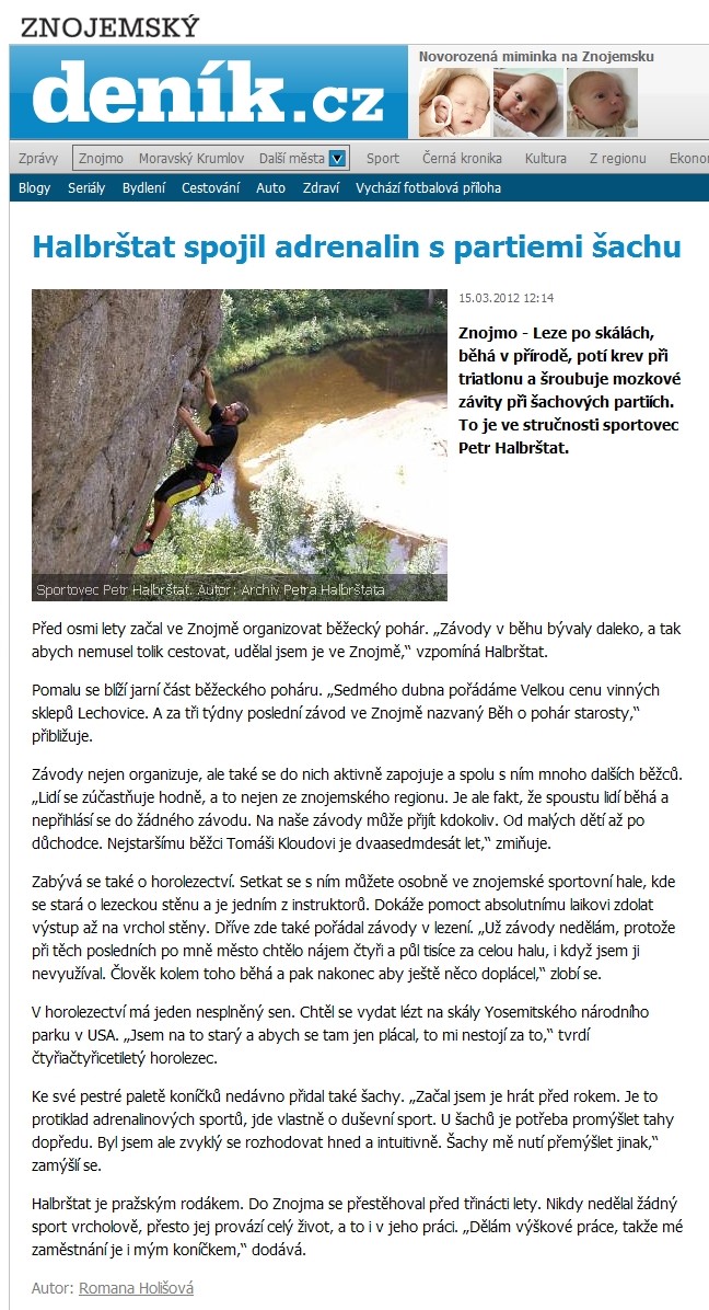 ZR: 2012-03-12 Halbrštat spojil adrenalin s partiemi šachu