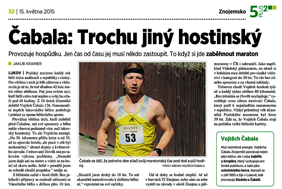 2013-03-13 Znojemské listy - V Mistelbachu nám nestačili, usmívá se běžec Čabala